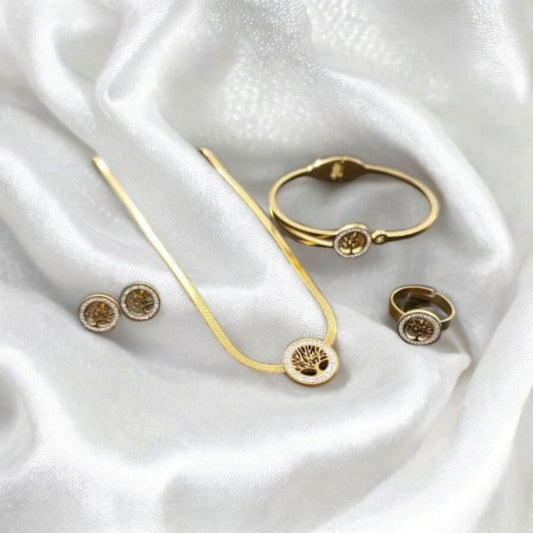 Stainless Steel Tree Necklace Golden Set