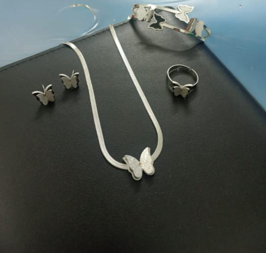 Butterfly Stainless Steel Necklace Silver Set
