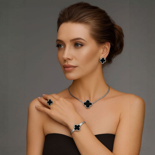 Silver Clover Pendant Set