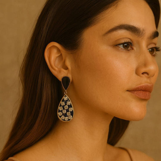 Exude sophistication and elegance with our Black & Gold Floral Earrings. The intricate floral design...