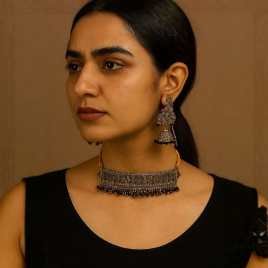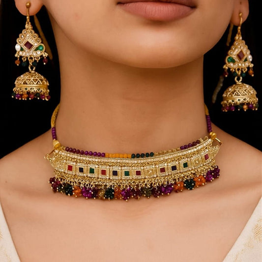 Indulge in pure luxury with our Noor Mahal Choker Set. Featuring a stunning design and...