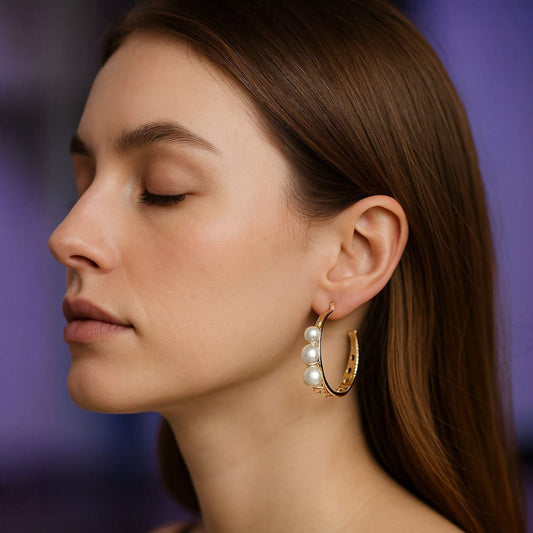 Elevate your style with our White Pearly Hoop earrings. Crafted with lustrous, white pearls, these...