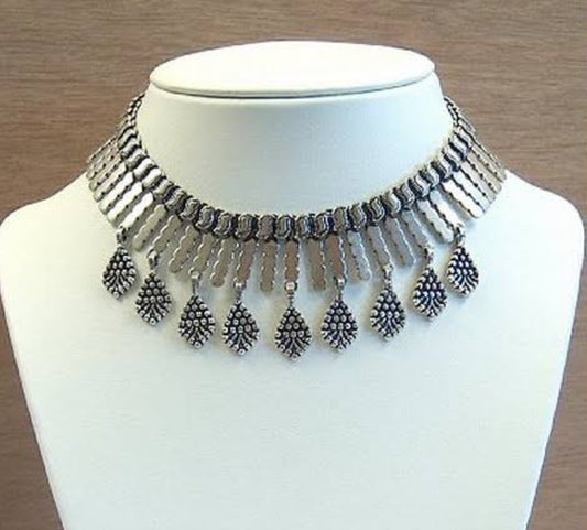 Indulge in the elegance of our Silver Drop Leaf Choker Set. Crafted with a delicate...