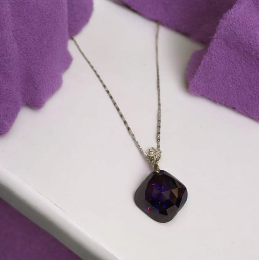Intensify your style with our Purple Crystal Pendant. This elegant piece features a shimmering purple...