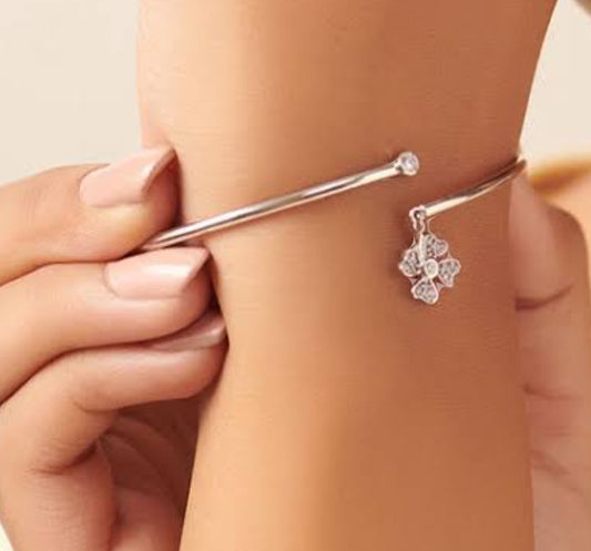 Indulge in luxury with our Silver Floral Bracelet. This exquisite piece features delicate silver flower,...