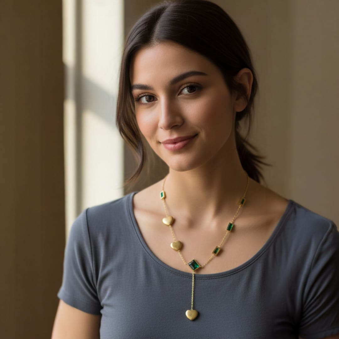 - Handcrafted with exquisite emerald cubic stones, this pendant exudes sophistication and elegance.
