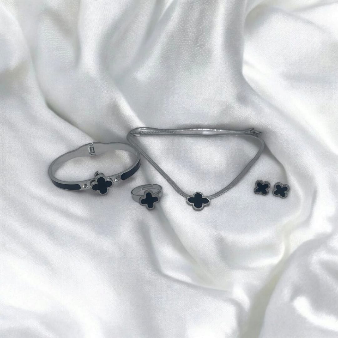 - Elevate your elegance with this Flowery Stainless Steel Necklace Set, featuring delicately crafted floral designs that add a refined touch to any outfit.
