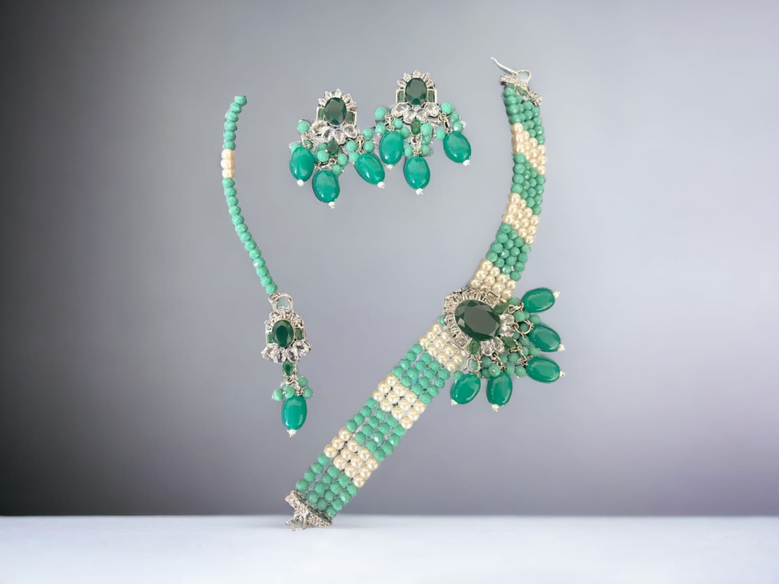- Indulge in the luxurious and sophisticated world of fashion with our Gem Stone Choker Set.