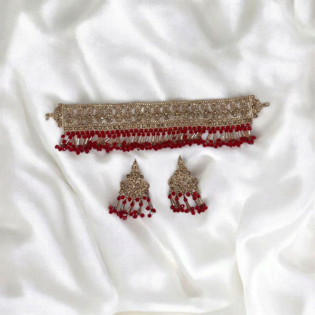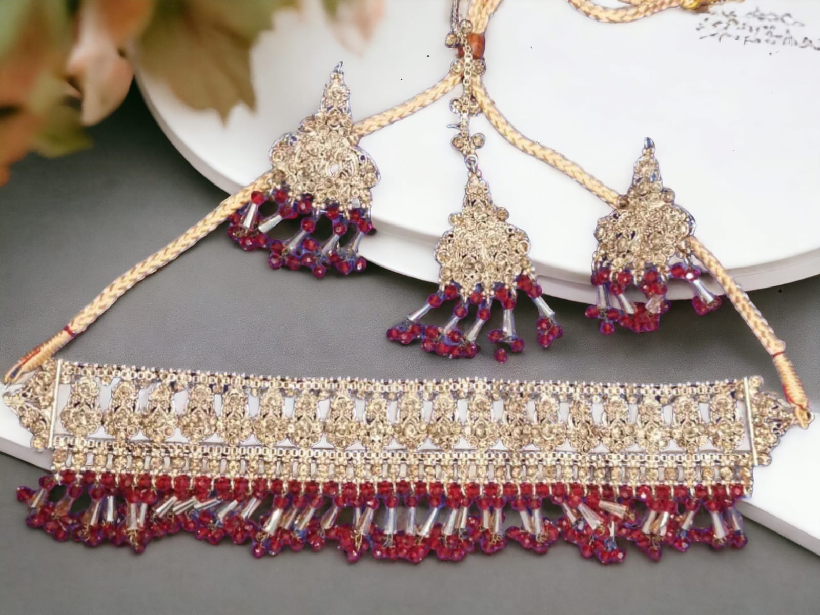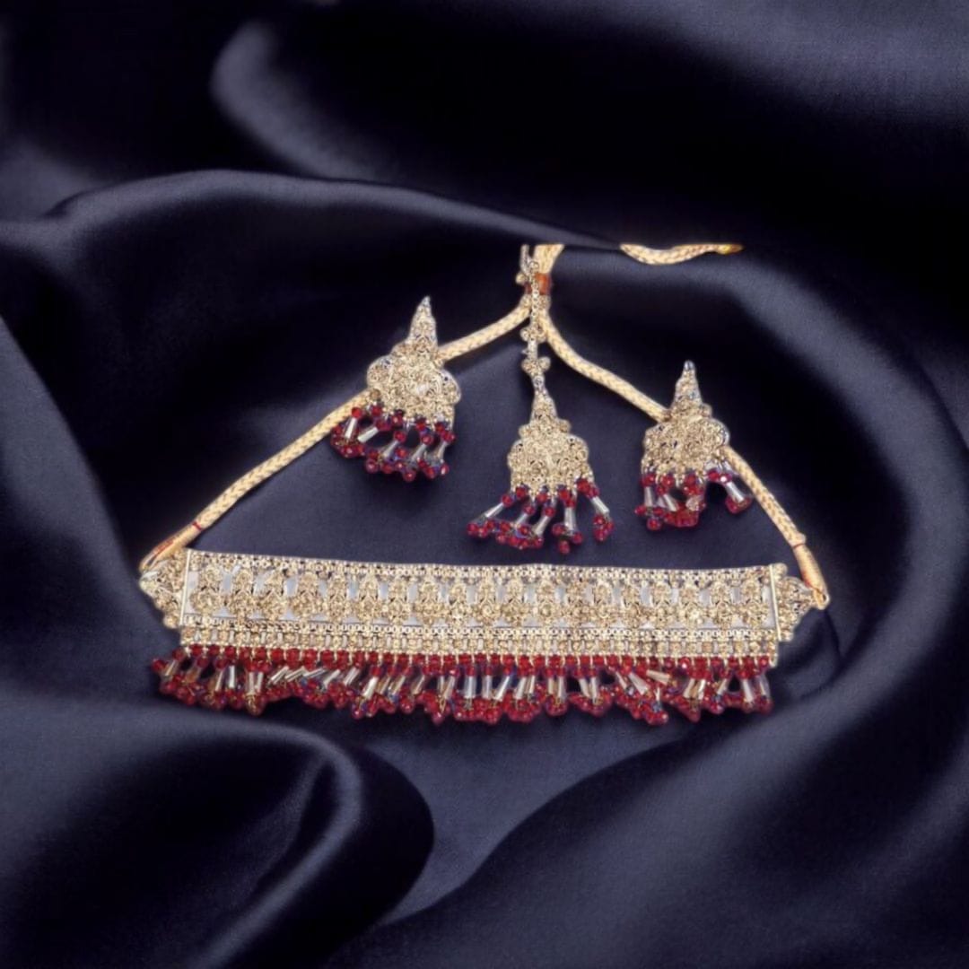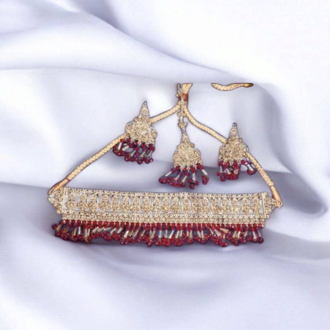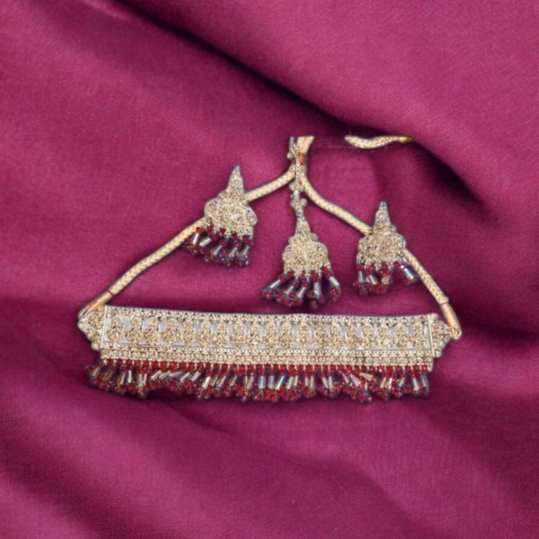 - Indulge in luxury with our Red Maroon Zircon Choker.