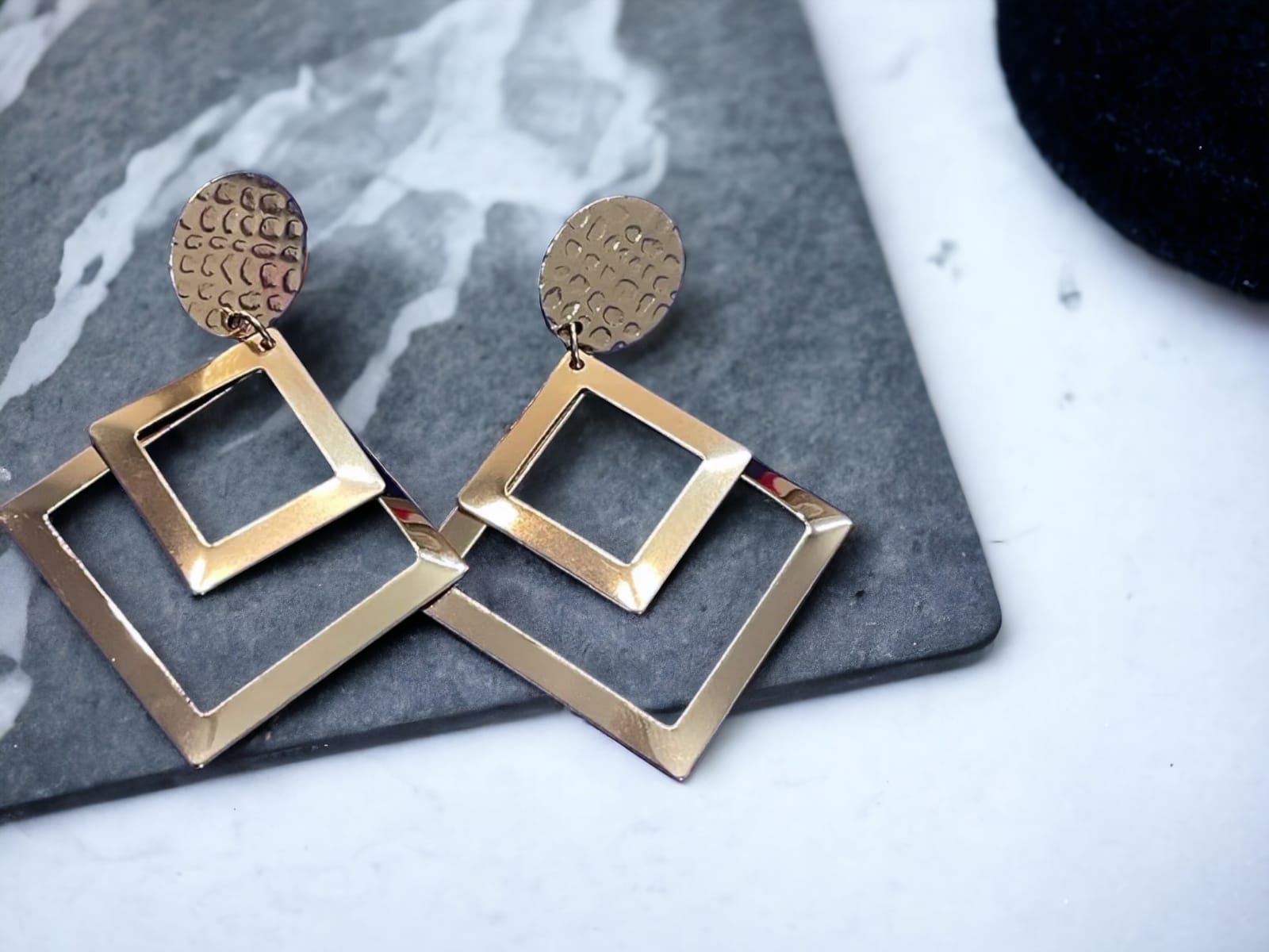- This exquisite piece features a stunning square design crafted from the finest rose gold, adding a touch of elegance and sophistication to any look.