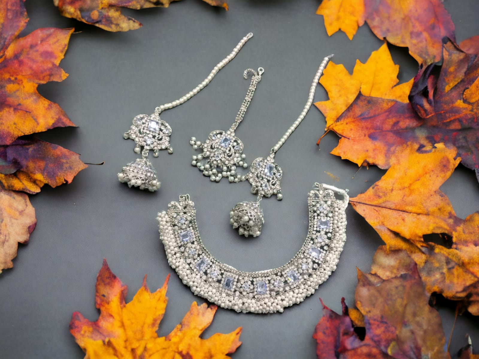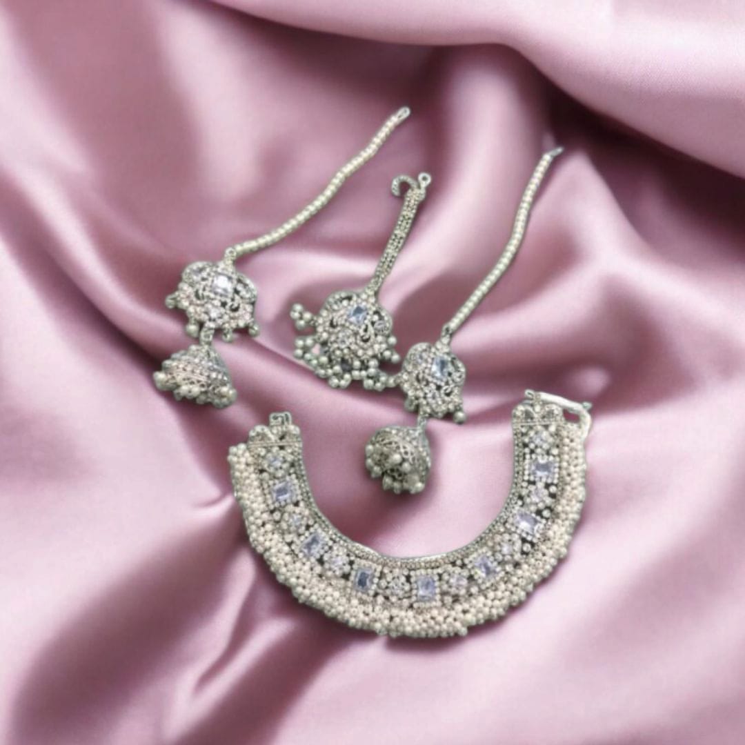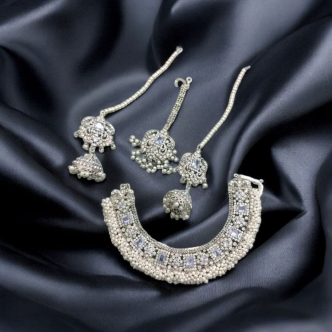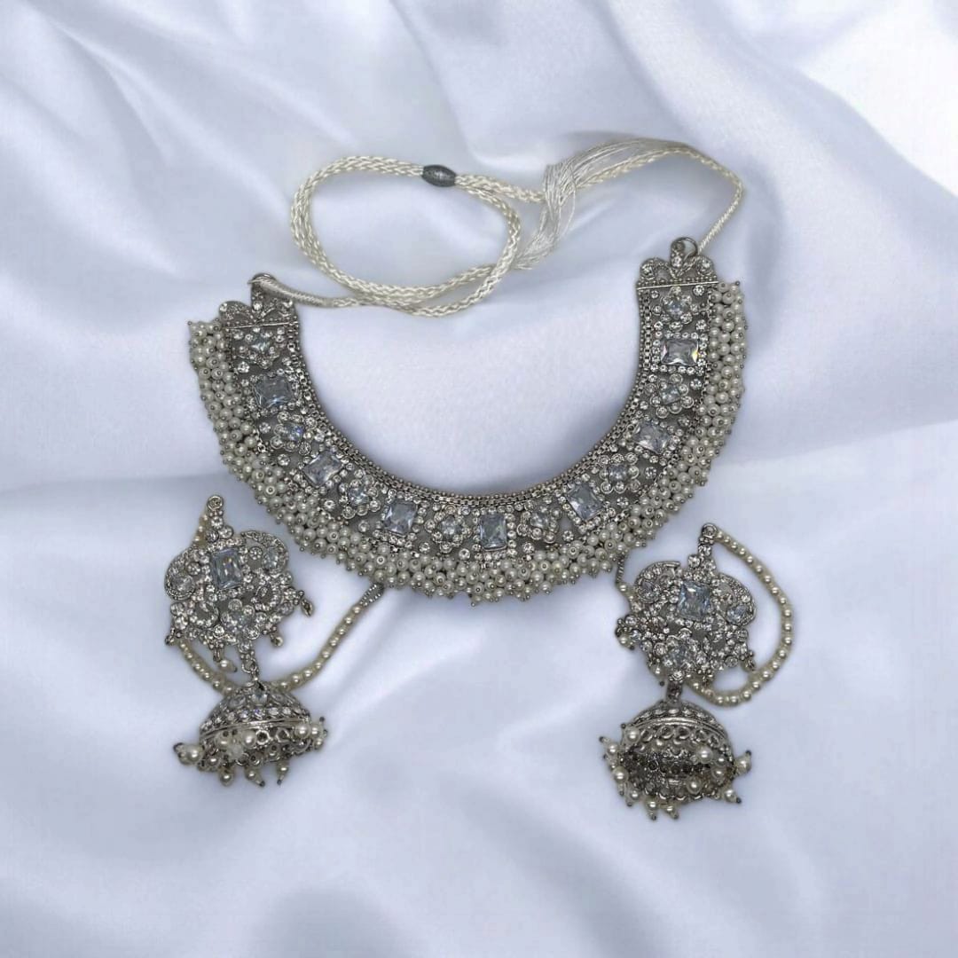 Crafted in shimmering silver and adorned with striking zircon stones, this set exudes luxury and sophistication.