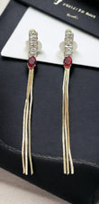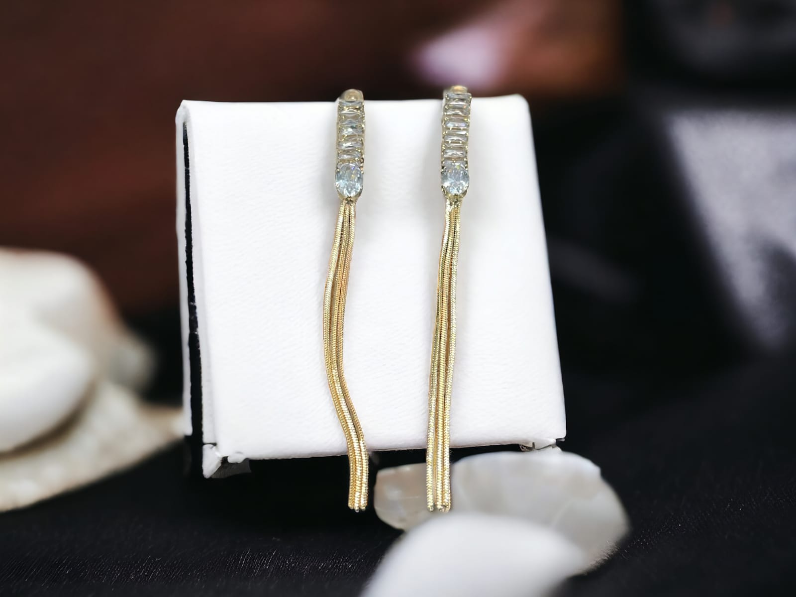 - Luxuriate in the timeless elegance of these Trendy Golden Long Earrings.